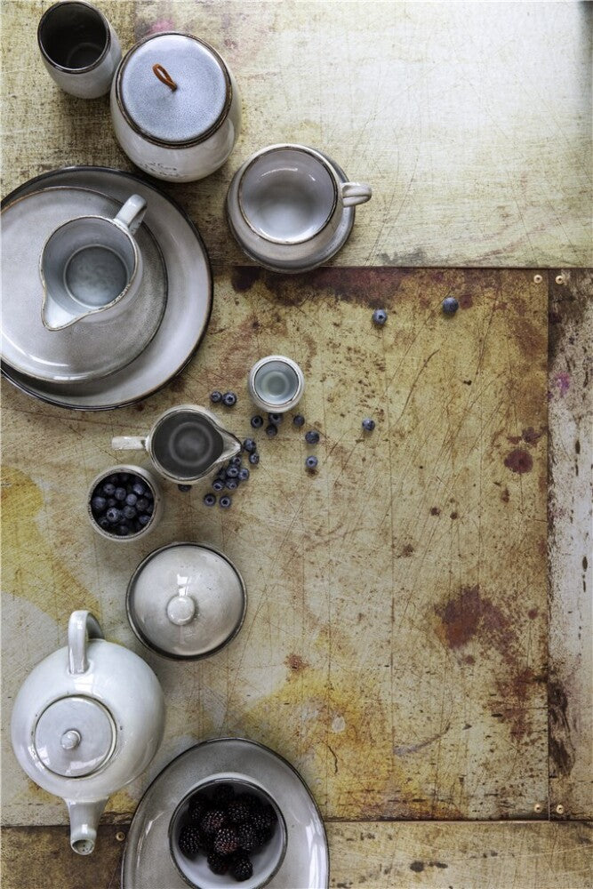 Beautiful grey stoneware jug from LENE BJERRE. Add a touch of joy and imbalance with this Amera jug, which measures L13.5xW8xH10.5 cm. and can contain 30 cl. With its calm colour tones and soft organic shapes the jug is guaranteed to create a lovely atmosphere at your table. This jug is a part of the Amera series. All the products in the Amera series are coated with double reactive glaze. That means that variations in colour and appearance from piece to piece can occur. We consider that as the characteristics and charm of the series.