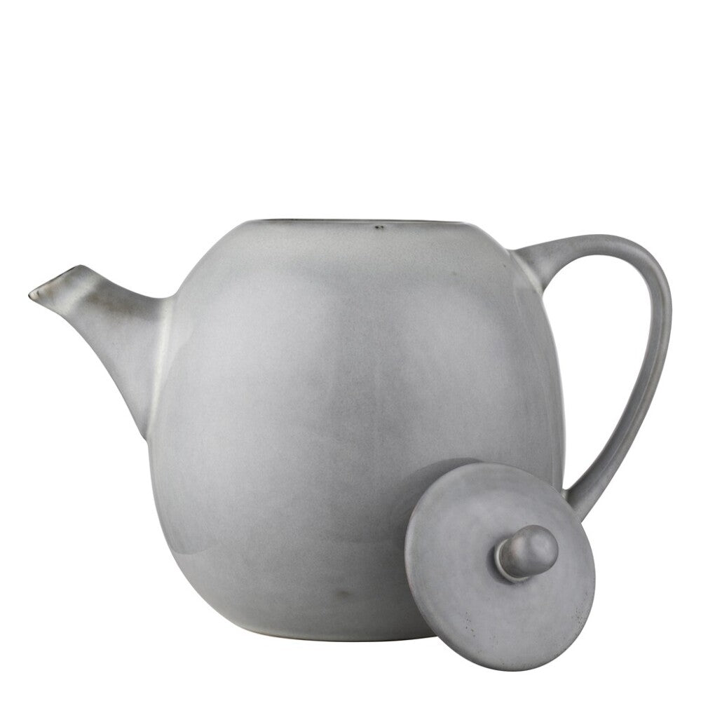 Lovely tea pot made of grey coloured stoneware. The tea pot measures L23.5xW14xH17.5 cm and can contain 140 cl. The tea pot is a part of the Amera series. All the products in the Amera series are coated with double reactive glaze. That means that variations in colour and appearance from piece to piece can occur. We consider that as the characteristics and charm of the series. NOTE: This tea pot is microwave and dishwasher safe.