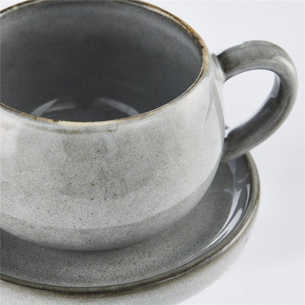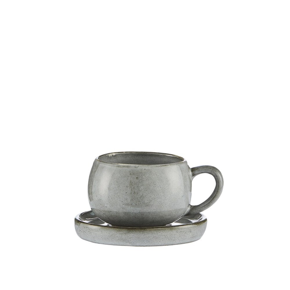 Lovely espresso cup made of grey coloured stoneware. The espresso cup measures L9xW9xH5 cm. The espresso cup is a part of the Amera series. All the products in the Amera series are coated with double reactive glaze. That means that variations in colour and appearance from piece to piece can occur. We consider that as the characteristics and charm of the series.