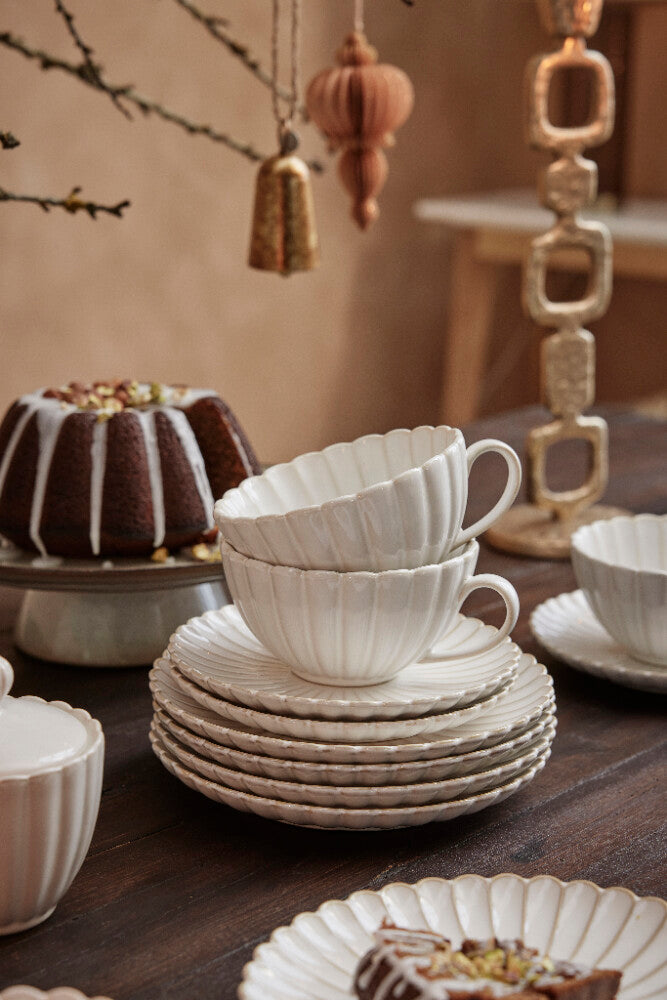 Camille cup/saucer and can contain 40 cl. and offers a luxurious and elegant way to serve your family and guests. Made from high-quality porcelain, this series is perfect for any occasion, from formal dinners to cozy family meals. With its unique design featuring delicate shades of ivory and beige, this dinnerware set adds a feminine touch to your dining table, making it truly beautiful.